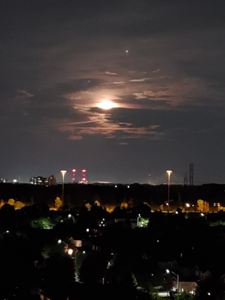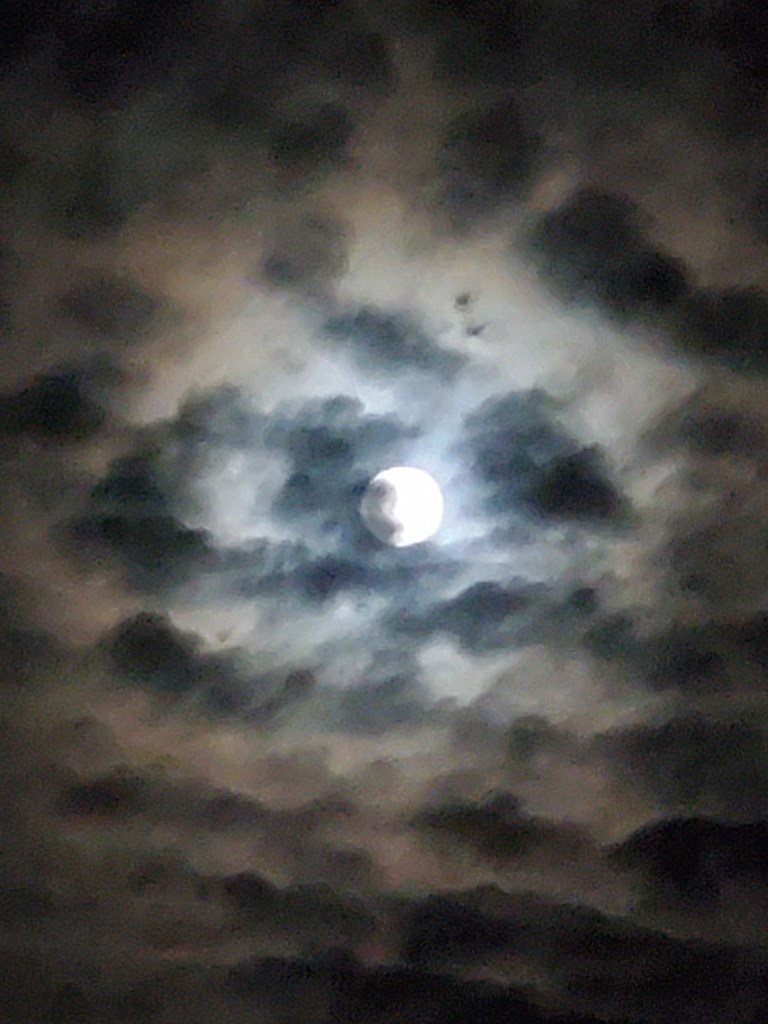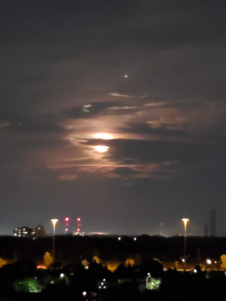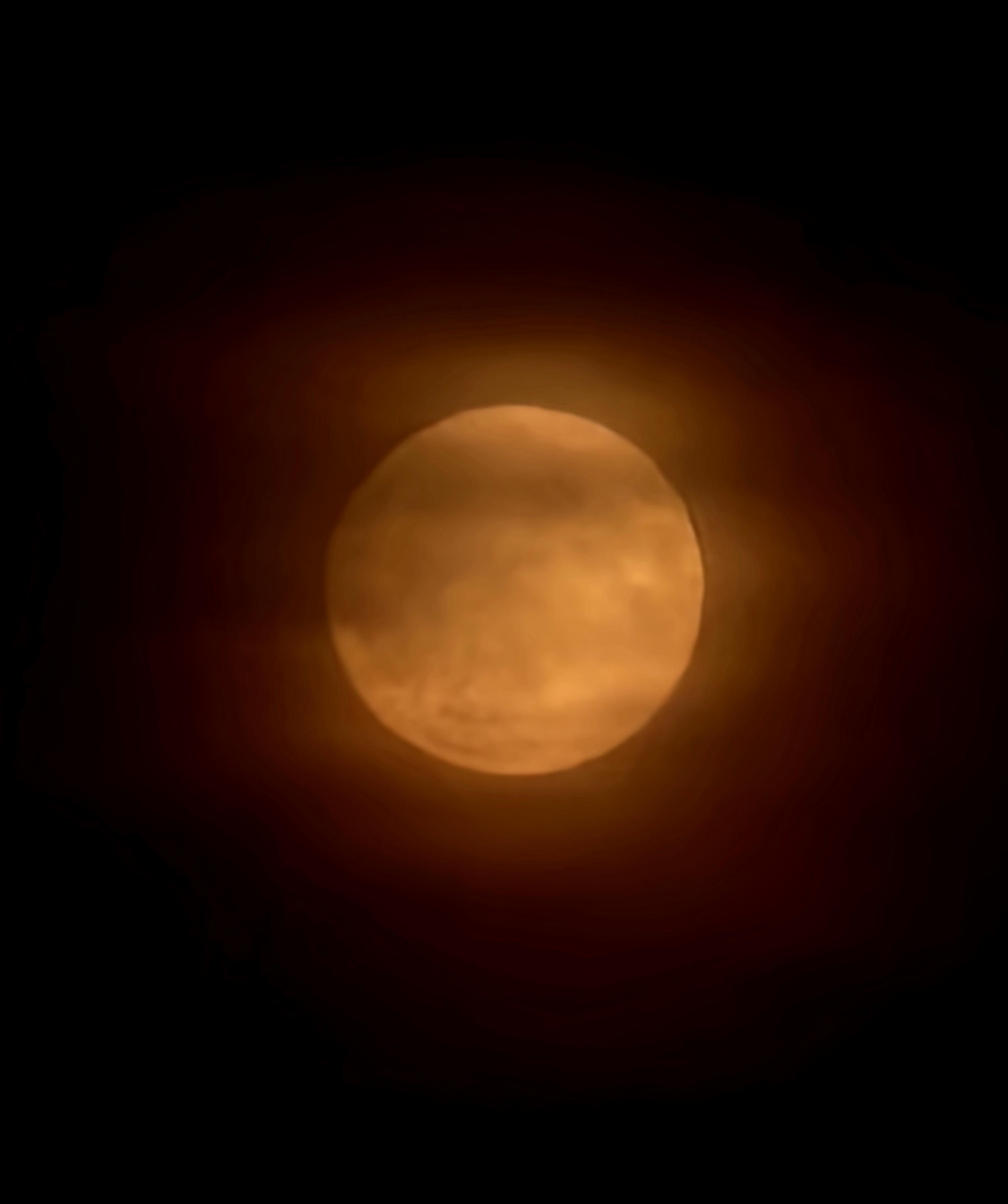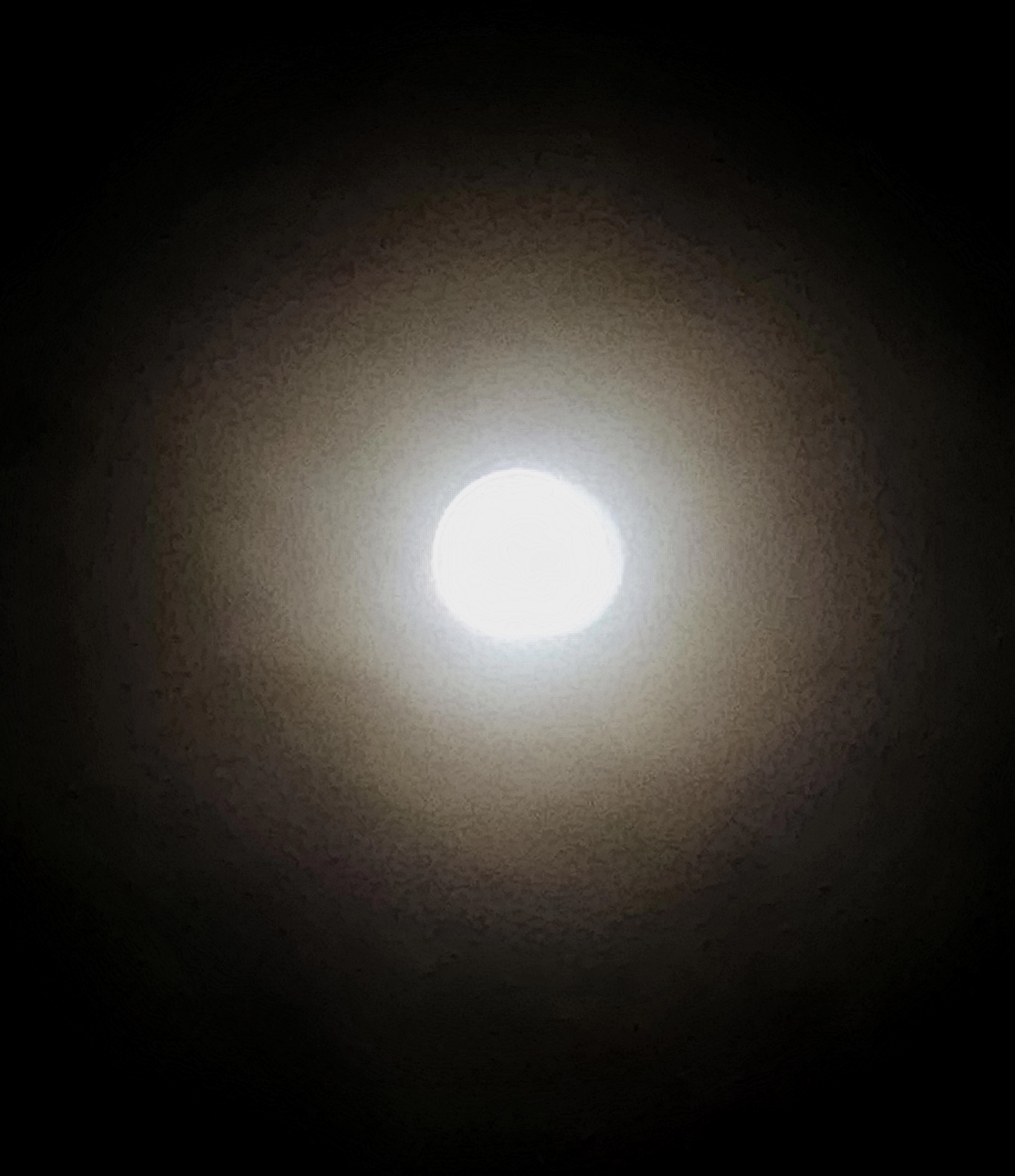 So surreal, so ethereal: golden halo around moon – such a delight!