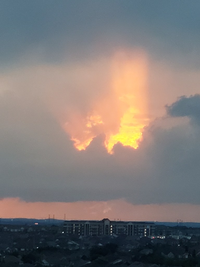 At dusk, God manifests as a surreal, yellow-orange sunset