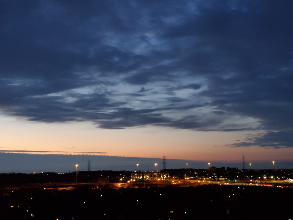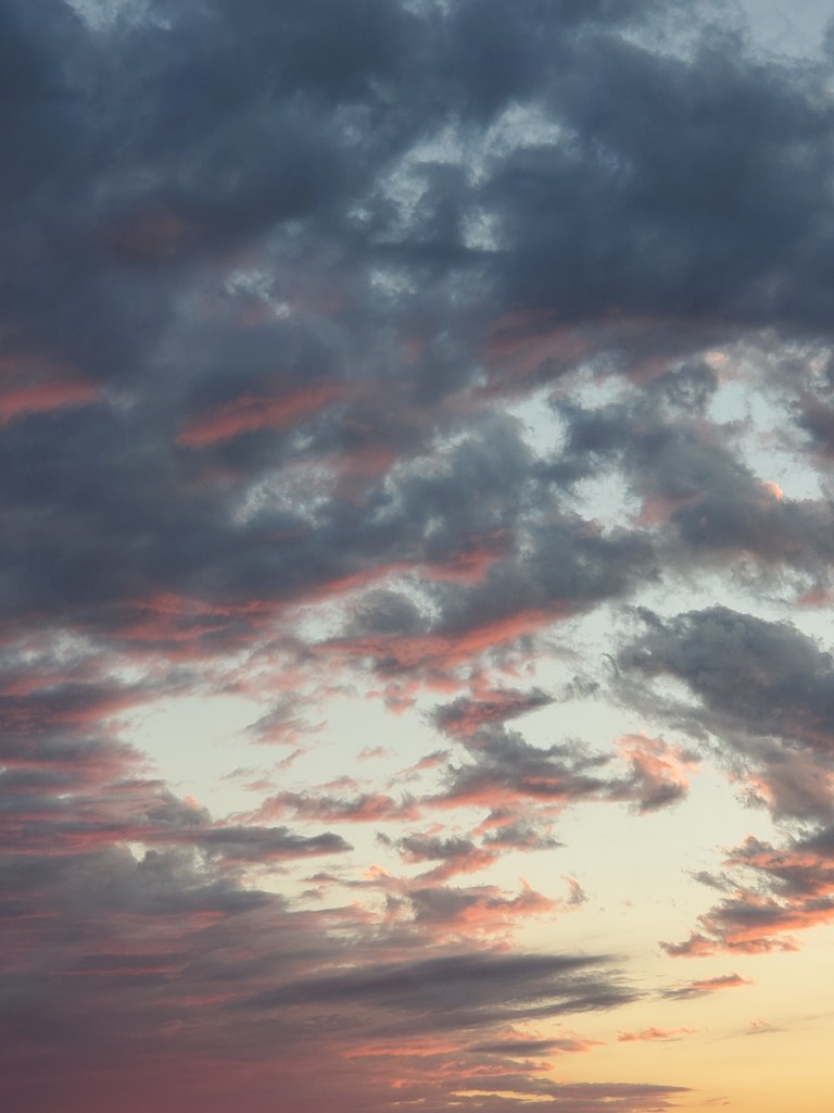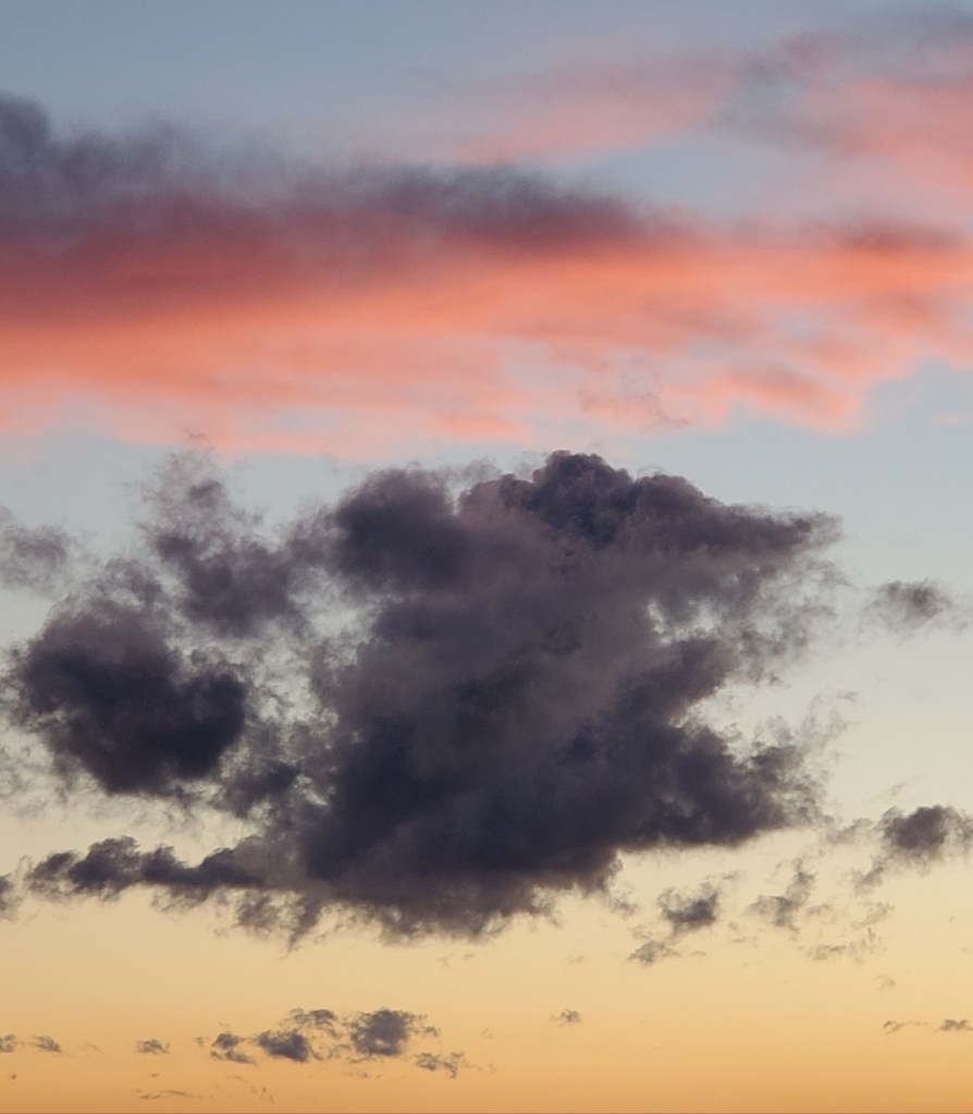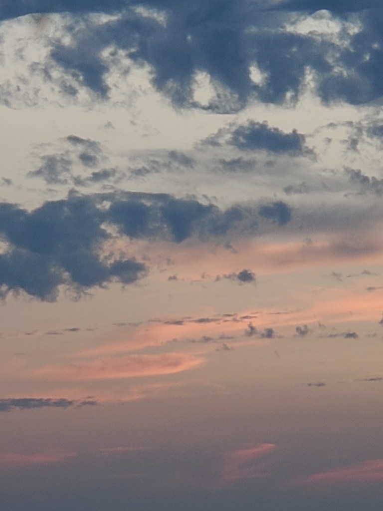 Shades of grays and whites, clouds moving about in the sky, like thoughts in the mind