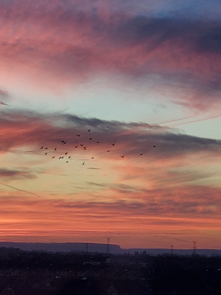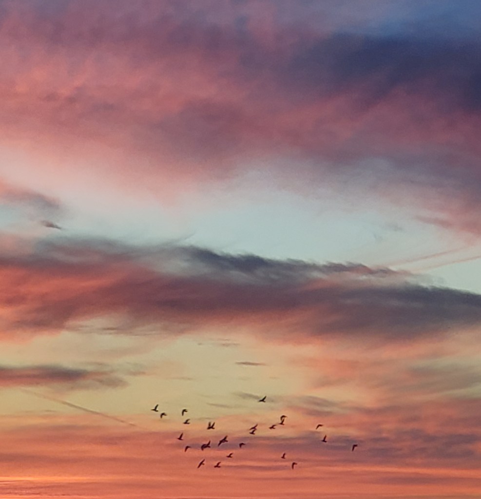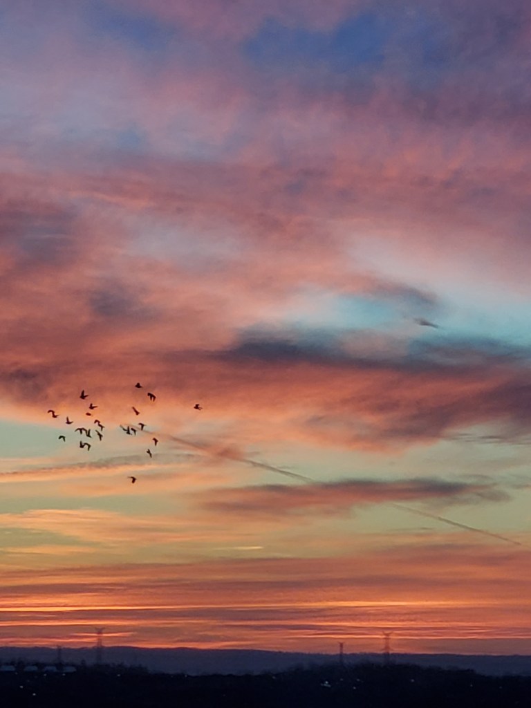 Wow: trees all different, yet birds embrace each & in turn trees bend to welcome
