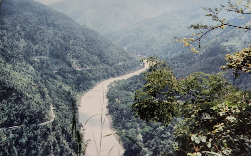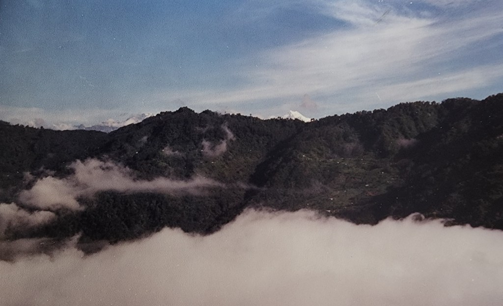 The next morning dawned bright, lo and behold, with a formidable view of glistening, snow-clad Kanchenjunga peak! We descended down the valley and waded about the Tista river waters for an infinitely long time. The river crossing by means of an antiquated, open-air ropeway was an event in itself. At one vantage point, our feet nearly touched the tree tops underneath! The General was waiting for us at the other end with a savory picnic lunch …